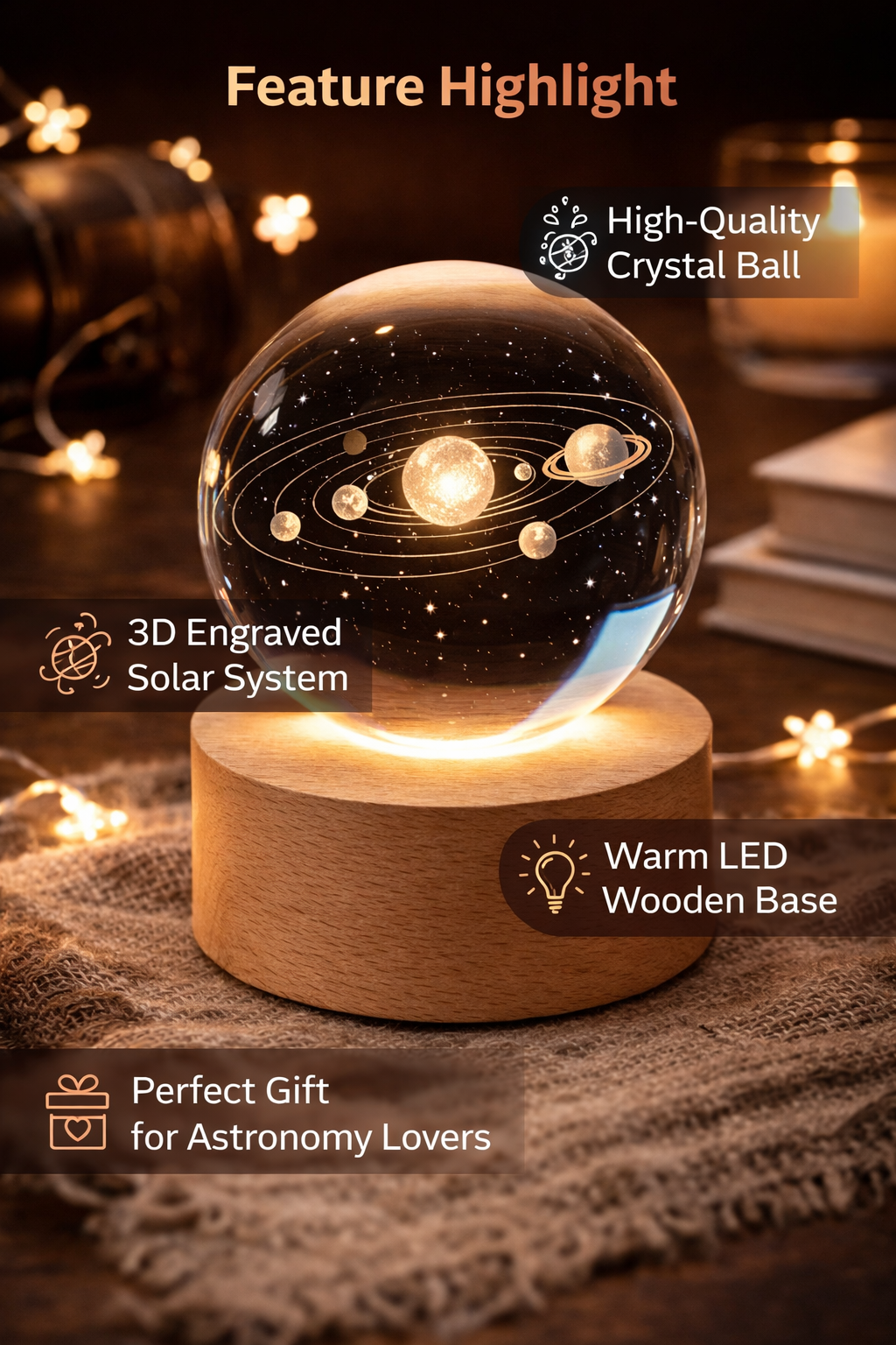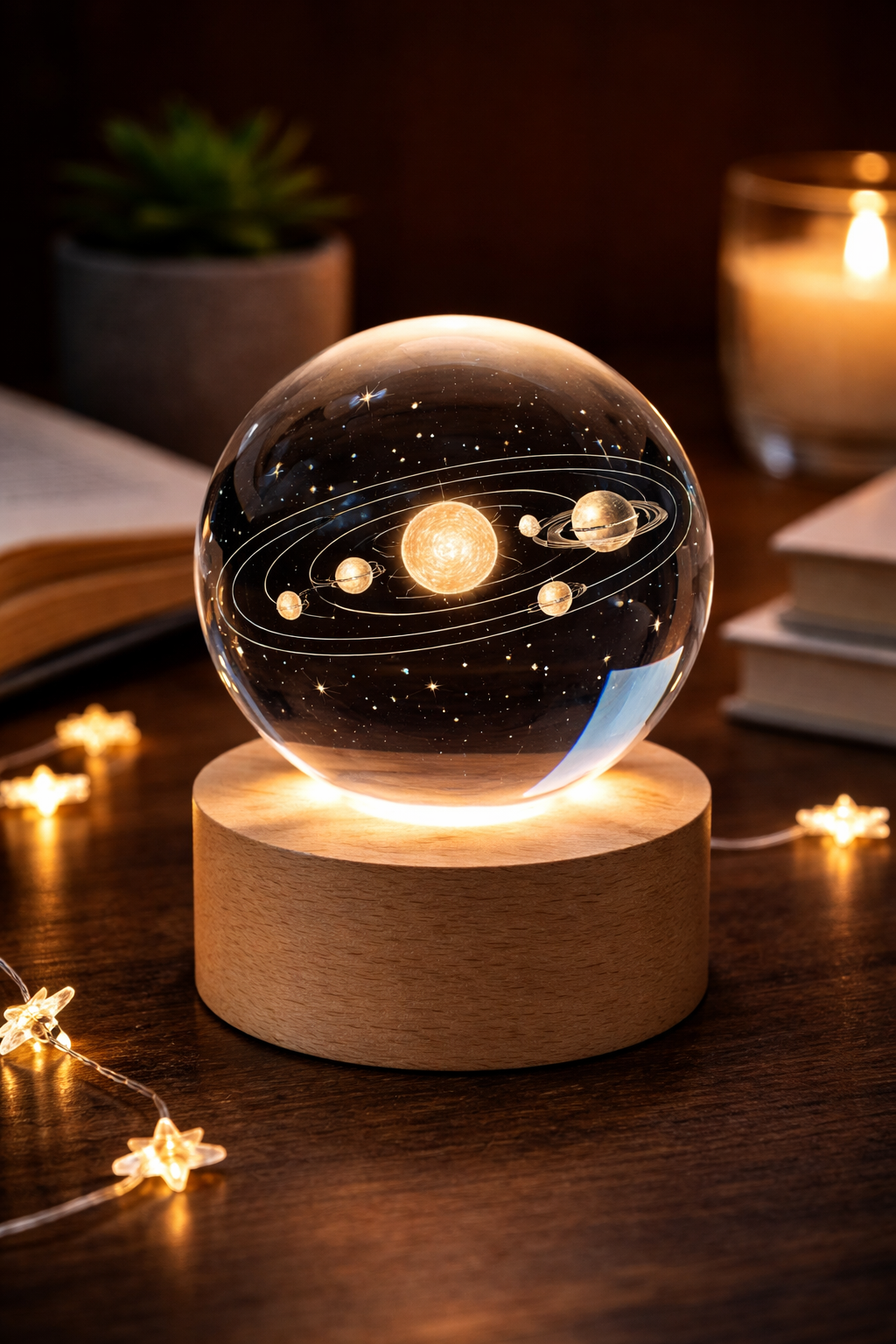 3D Crystal Ball Solar System Globe – LED Astronomy Planet Decoration